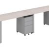 The 2 person computer desk is made from high quality materials and it has contemporary styling that would look great in any office environment. It’s available in different sizes, finishes and you have your choice of drawers for storage. It’s shown in a Miele finish with two sets of drawers and it’s backed by a limited lifetime warranty.