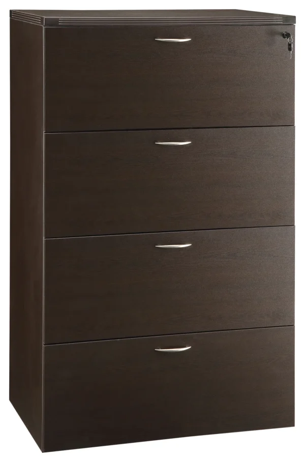 The lateral file cabinet features a practical design with modern styling, making it a perfect fit for any home office or professional workspace. It supports both legal and letter-size files and is available in a variety of vibrant finishes—Espresso shown. Built for durability and backed by a 5-year manufacturer’s warranty for added peace of mind.