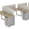 The 4 person office workstation by Corp Design has metal loop-legs and a thermally-fused laminate top that has a rich wood look and feel. You can choose from different sizes, finishes, and there are multiple sets of drawers available for storage. As pictured, it’s shown in a Noce finish and it’s guaranteed by a limited lifetime warranty.