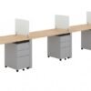This computer workstation is available in several sizes and compatible with multiple storage configurations. Up to four users can have workstations with dividers and pedestal storage at once. Quality guaranteed by a limited lifetime warranty.