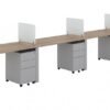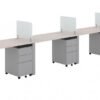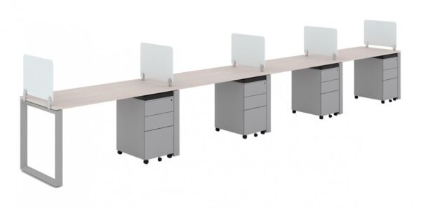 This office workstation desk can seat up to four users at once and offers each a mobile pedestal with locking drawers. Additional dividers between each station allow for added privacy. Quality guaranteed by a limited lifetime warranty.