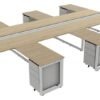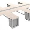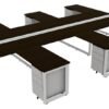 The 6 person workstation desk can be custom ordered in different sizes, finishes, and you can choose from multiple sets of drawers. It has metal loop-legs and a thermally-fused laminate top with a built-in aluminum accessory door for cable management. Optional power is available and it can be purchased separately. Quality backed by a limited lifetime warranty.