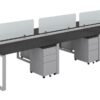 The long office desk is available in different sizes and finishes, you can also choose from multiple sets of drawers for storage. The model in the picture has a Noce finish with acrylic privacy panels and eight rolling sets of drawers. Quality guaranteed by a limited lifetime warranty.