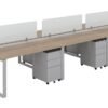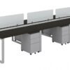 The long workstation desk is made from premium quality materials that are designed for full time use in a busy office environment. It’s available in different sizes, finishes and you can choose from multiple sets of drawers. As pictured, it’s shown in a Miele finish with acrylic divider panels and it has drawers for storage. Quality backed by a limited lifetime warranty.