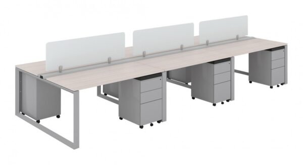 The computer workstation desk can be ordered in different sizes and finishes with your choice of drawers for storage. The model in the picture has a Blanc De Gris finish with acrylic divider panels and six mobile sets of drawers. Quality backed by a limited lifetime warranty.