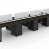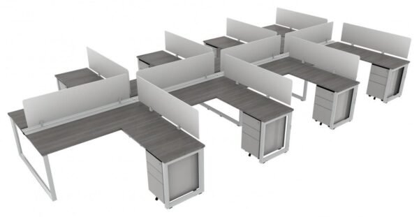 The large workstation desk can seat eight employees, making it an excellent solution for a collaborative workspace. Equipped with acrylic divider panels, it provides each user with a dedicated space that promotes focus while still encouraging open communication and teamwork. It’s available in different sizes and finishes, with your choice of drawers. You can also choose a frame color, and it’s backed by a limited lifetime warranty.
