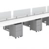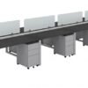 This workstation desk has a capacity of eight people and can be configured to your liking in a variety of ways. Choose your preferred size, finish, and even the type of mobile drawer pedestals at each seat’s disposal. Quality guaranteed by a limited lifetime warranty.