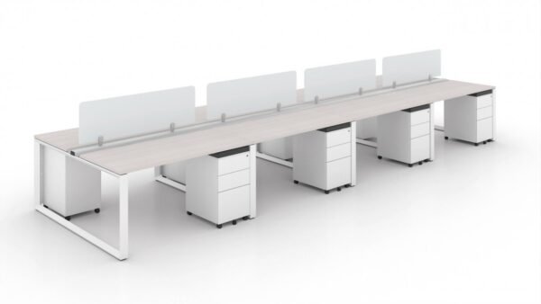 The collaborative workstation is available in different sizes and finishes, with your choice of drawers for storage. You can also choose a color for the frame, and it comes with acrylic divider panels that provide a sense of privacy while fostering an open, collaborative atmosphere. Workstation power is available and can be purchased separately. Quality guaranteed by a limited lifetime warranty.