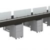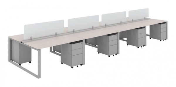 The office workstation desk can be ordered in different sizes, finishes and you have your choice of drawers for storage. As pictured, it’s shown in a Blanc De Gris finish and each station has one mobile set of drawers. Quality guaranteed by a limited lifetime warranty.