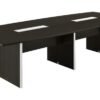 The executive conference table by Corp Design is constructed with a premium quality laminate that stands up to full time work shifts and is easy to clean. The model in the picture has a Grigio finish with pre-installed grommets, aluminum cable management covers and panel bases with silver aluminum edging. It’s available in different sizes, finishes and comes with a limited lifetime warranty.