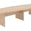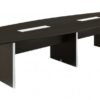 The Potenza series conference table by Corp Design is a high-quality furnishing that will add a high level of professionalism to your boardroom. Power outlet modules can be  added to this table in order to provide data and media connectivity to anyone attending meetings. The table is available in 8 FT, 10 FT, 12 FT, 14 FT, 16 FT, 18 FT and 20 FT lengths and your choice of finish including Blanc De Gris, Espresso, Grigio, Miele and Noce. Corp Design offers this boat shaped conference table as a marvelous centerpiece to a professional conference room. The boat shaped conference table is made from commercial grade laminate that will be sturdy for years to come, and prevent scratching and fading as well. The table is a graceful design that adds to the artistic value of the complete office palette. Bold, stylish, and professional are the words used to describe this boat shaped conference table. The table design gets its name from the profile shape of the table. Looking down, the table is a modified rectangular table with both long sides flaring out to create a rounded shape in the middle of the table. This profile has the appearance of an old dingy or row boat, it just makes sense to call it by the boat shaped name. Boat shaped conference tables are exceedingly popular due to the added sense of enhancement to the from the boat shape. This boat shaped conference table partners well with contemporary and modern office chairs to complete the overall conference room. The number of chairs needed is dictated by the size of the table purchased. This table comes in sizes from eight feet to twenty feet, it is a good rule of thumb to purchase the same number of chairs as the length of the table. This boat shaped conference table is a smart choice when looking for a new conference room table.