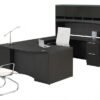 The desk with bookcase is available in different sizes, finishes and you can choose from multiple sets of drawers. It has an overhead hutch and a reversible bridge that can be installed to have the opening on either side. As pictured, it’s shown in an Espresso finish with one locking set of drawers. Quality backed by a limited lifetime warranty.