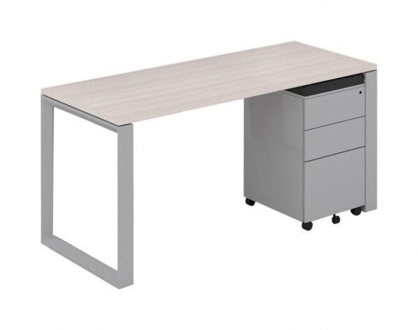 The office workstation desk has metal loop legs with a durable laminate top that will look new for many years to come. You can choose from several different sizes, finishes and you have your choice of drawers for storage. It’s shown in a Blanc De Gris finish with one set of drawers and it’s backed by a limited lifetime warranty.