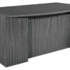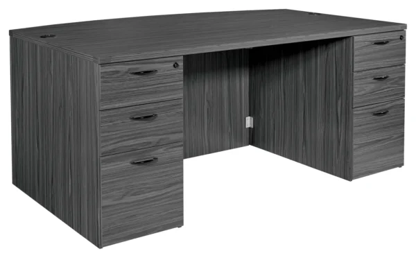 The bow front desk with drawers is offered in a range of finish options and can be customized with either a Glass or Laminate modesty panel. It includes two sets of Box/Box/File drawers for organized storage and features pre-installed grommets for convenient cable management. Constructed from high-quality laminate, this desk is built to last and is backed by a 5-year manufacturer’s warranty for added assurance.