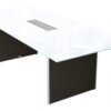 The boardroom conference table features a modern laminate base with aluminum-accented edges and a frosted glass top that comes standard in white. It’s available in different sizes and you can choose from several vibrant finish options, Grigio shown. It comes equipped with adjustable leveling glides and has a built-in grommet for cable management. Quality guaranteed by a limited lifetime warranty.