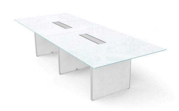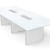 White Glass Top Conference Table, 2 Leaf w/ Laminate Base - 138" x 48"