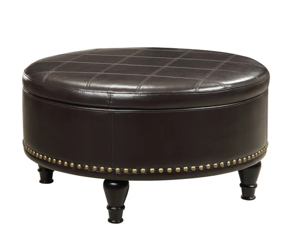For Use Type: Residential Use Only Primary Style: Midcentury Color: Varies Fabric Info: Bonded Leather Fabric Material: 20% recycled leather, 20% Fabric, 60% Polyurethane Cleaning Code: W/S Outer Materials: Bonded Leather, Solid Wood, Rubber Solids Weight capacity: 200 Greenguard Certified: No Ships in: 2-3 business days Assembled Dimensions: 32W x 32D x 18H Additional Dimensions: The ottoman has inner storage with a 32” diameter and a depth of 12.75” Seat Dimensions: 32W x 32D x 2.75T Furniture – LIMITED Warranty INSPIRED by Bassett® Warrants, to the original purchaser its products to be free from defects in material and workmanship for a period of 5 years. Defects and damage from misuse, abuse, negligence, alteration, accident, vandalism, rusting, acts of nature or any other event beyond the control of INSPIRED by Bassett® is not covered. The warranty does not cover cosmetic damage that may result from normal use. Liability for incidental or consequential damages is excluded. The user assumes all risk of injury resulting from the use of this product. This warranty gives you specific legal rights, and you may also have other rights which vary from state to state. To make a warranty claim, contact Customer Service, provide model number, sales receipt and description of the problem. It is the customer’s responsibility to prepay freight on any components returned to the factory. INSPIRED by Bassett® will pay return freight on components covered under terms of warranty. Chair – LIMITED Warranty INSPIRED by Bassett® chairs are warranted* from the date of purchase against failure due to material and workmanship as follows: