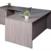 The l shaped computer desk features top quality laminate construction that is designed for full time use. It’s shown in a Driftwood finish and it has one set of pedestal drawers. It’s available in different sizes, finishes and you can choose from multiple sets of drawers.