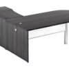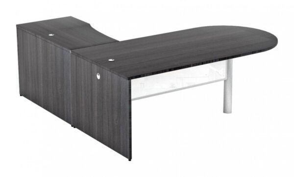 The l shape peninsula desk is available in different sizes, finishes and you can choose from multiple sets of drawers. It has a glass modesty panel and you can order it with a return on the right or left-hand side, right shown. As pictured, it’s shown in a Grigio finish with built in grommets. Quality backed by a limited lifetime manufacturer’s warranty.