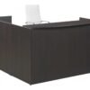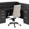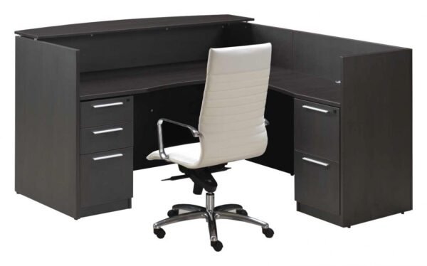 The reception desk is made from a high quality laminate and you can order it with a left or right-side return when facing the desk. It’s available in different finishes with your choice of drawers and you can order it with a Laminate or Glass transaction top. The model in the picture has an Espresso finish with 2 sets of drawers and a Laminate top, Right return shown. Quality backed by a limited lifetime warranty.