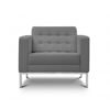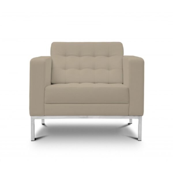 The office lounge chair that’s shown in the picture has a chrome plated stainless steel frame with tufted Sand leather upholstery and it can be custom ordered in different colors. This product is guaranteed by a limited lifetime warranty.