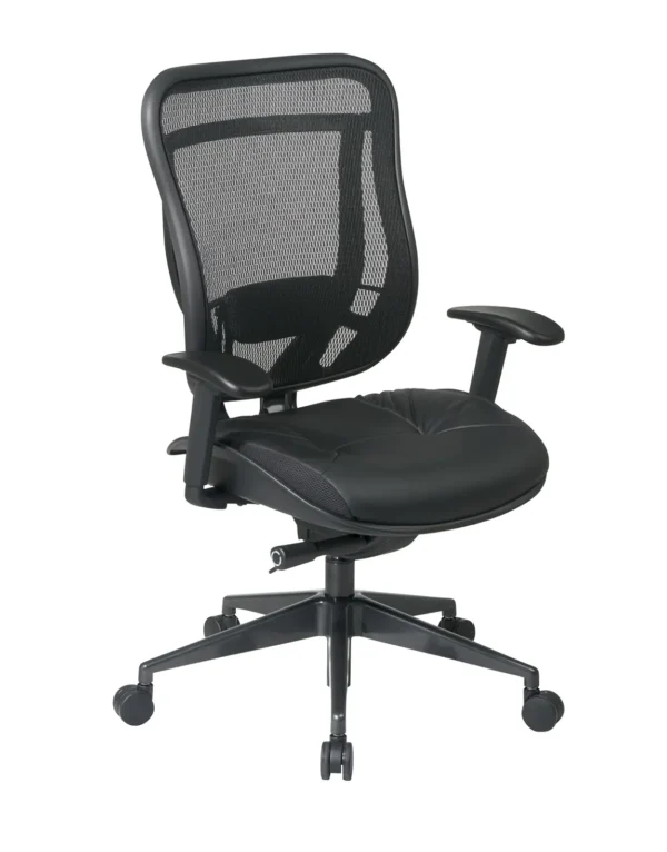 - Heavy-duty gunmetal finish base with dual-wheel carpet casters