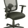 The ergonomic mesh office chair from the Harmony Collection features a black fabric seat, a contoured mesh back, and adjustable lumbar support. It offers height adjustment, swivel-tilt functionality, a tilt lock, and tilt tension control for personalized comfort.