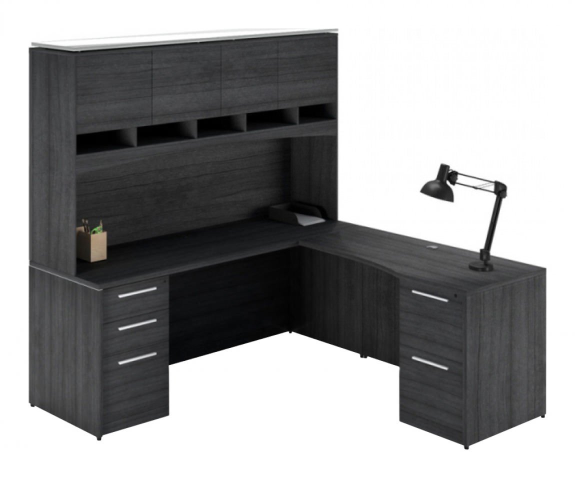 The 4 person desk workstation is crafted from high-quality laminate and includes acrylic divider panels for added privacy, built-in grommets for seamless cable management, and adjustable leveling glides for stability. It’s available in different sizes and finishes, with multiple drawer configurations to choose from. Quality guaranteed by a limited lifetime warranty.