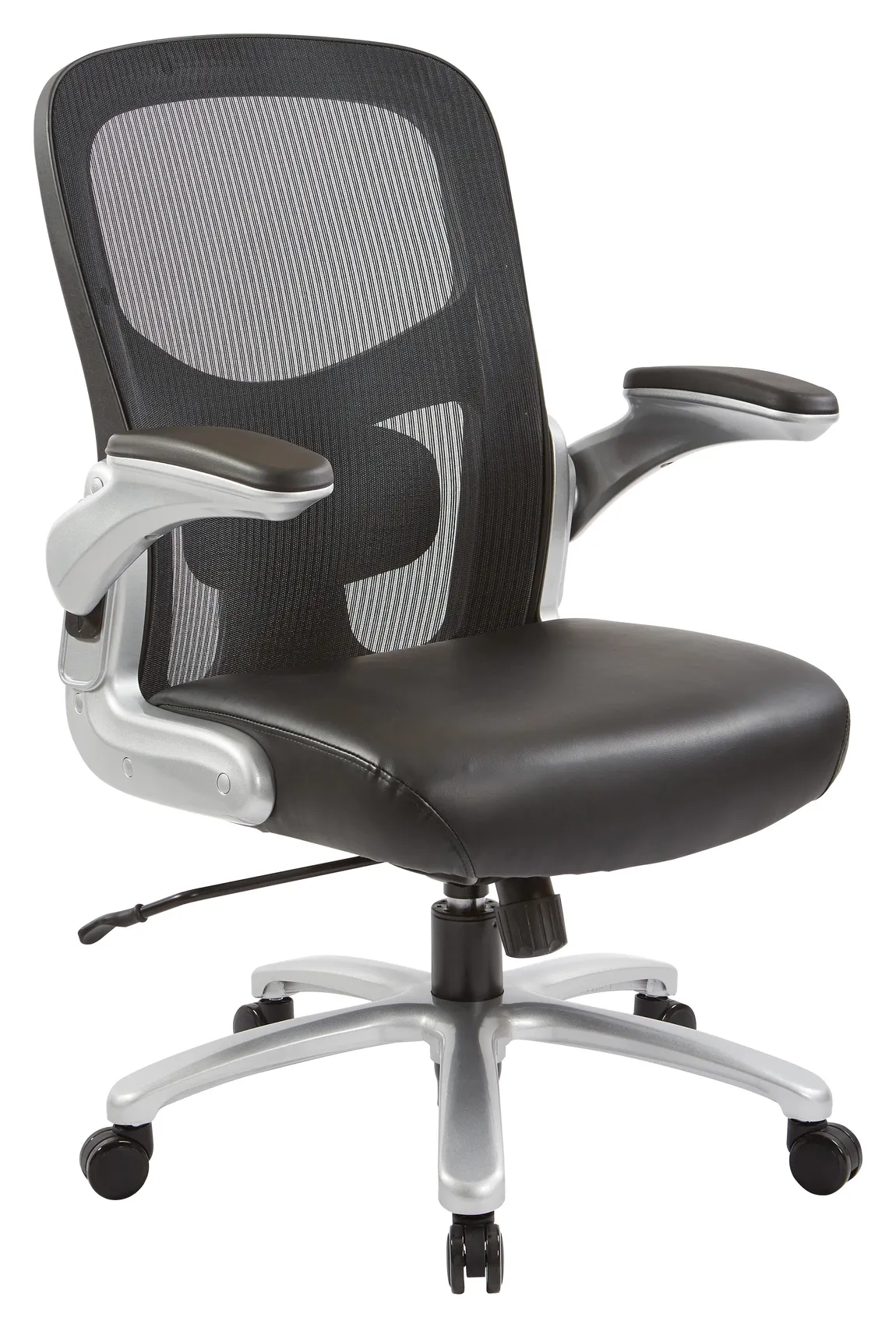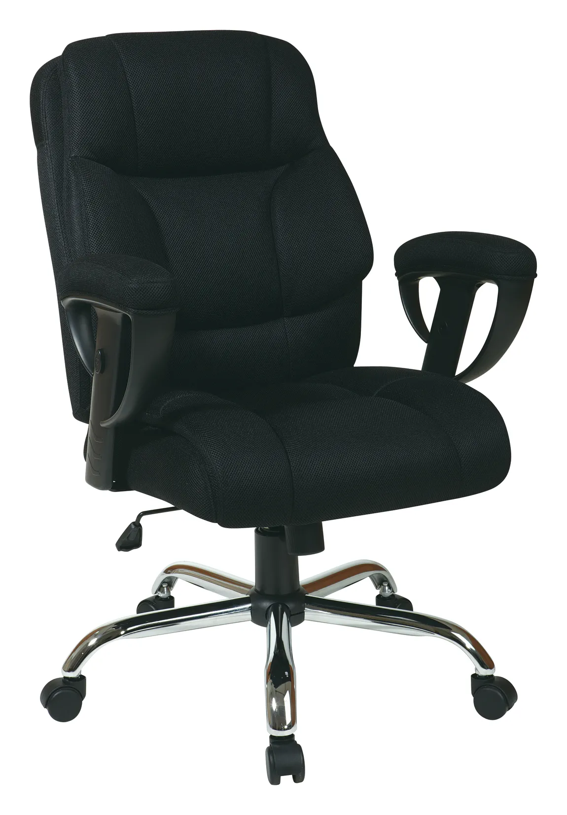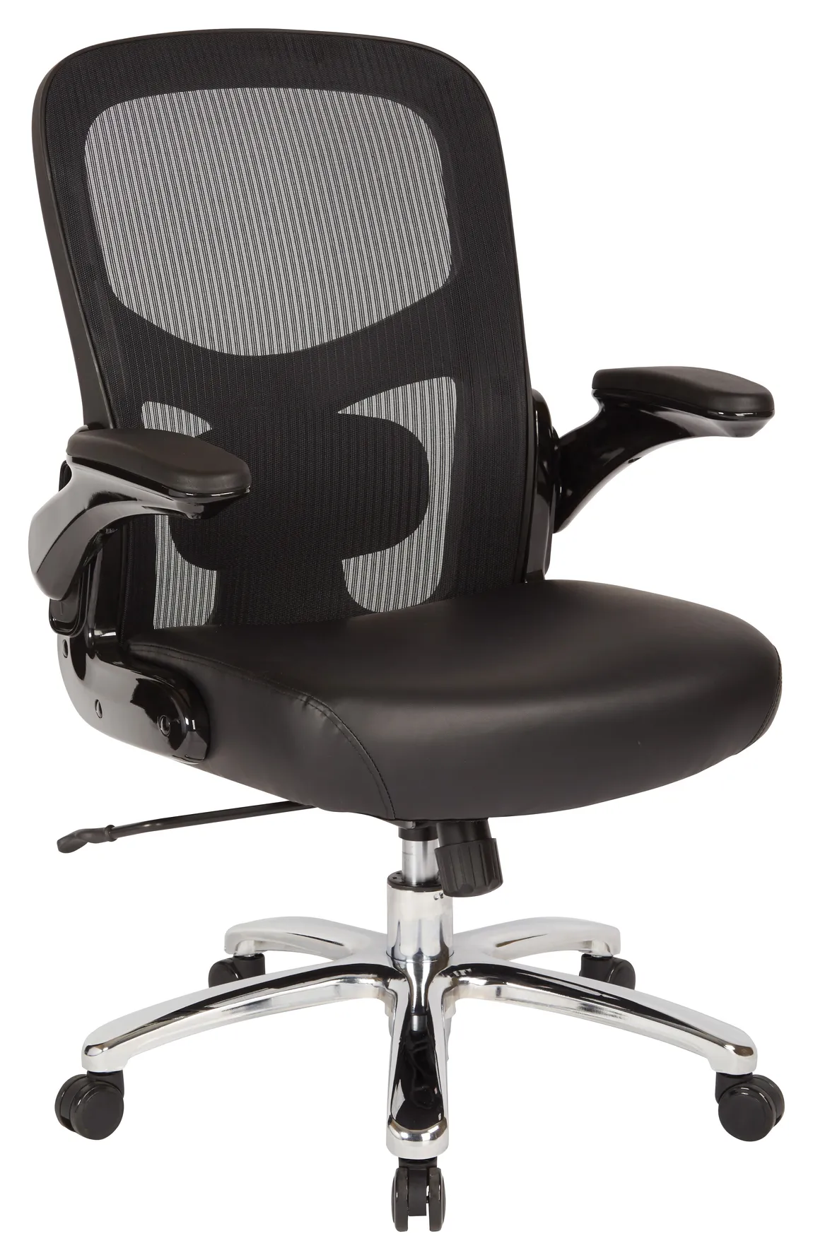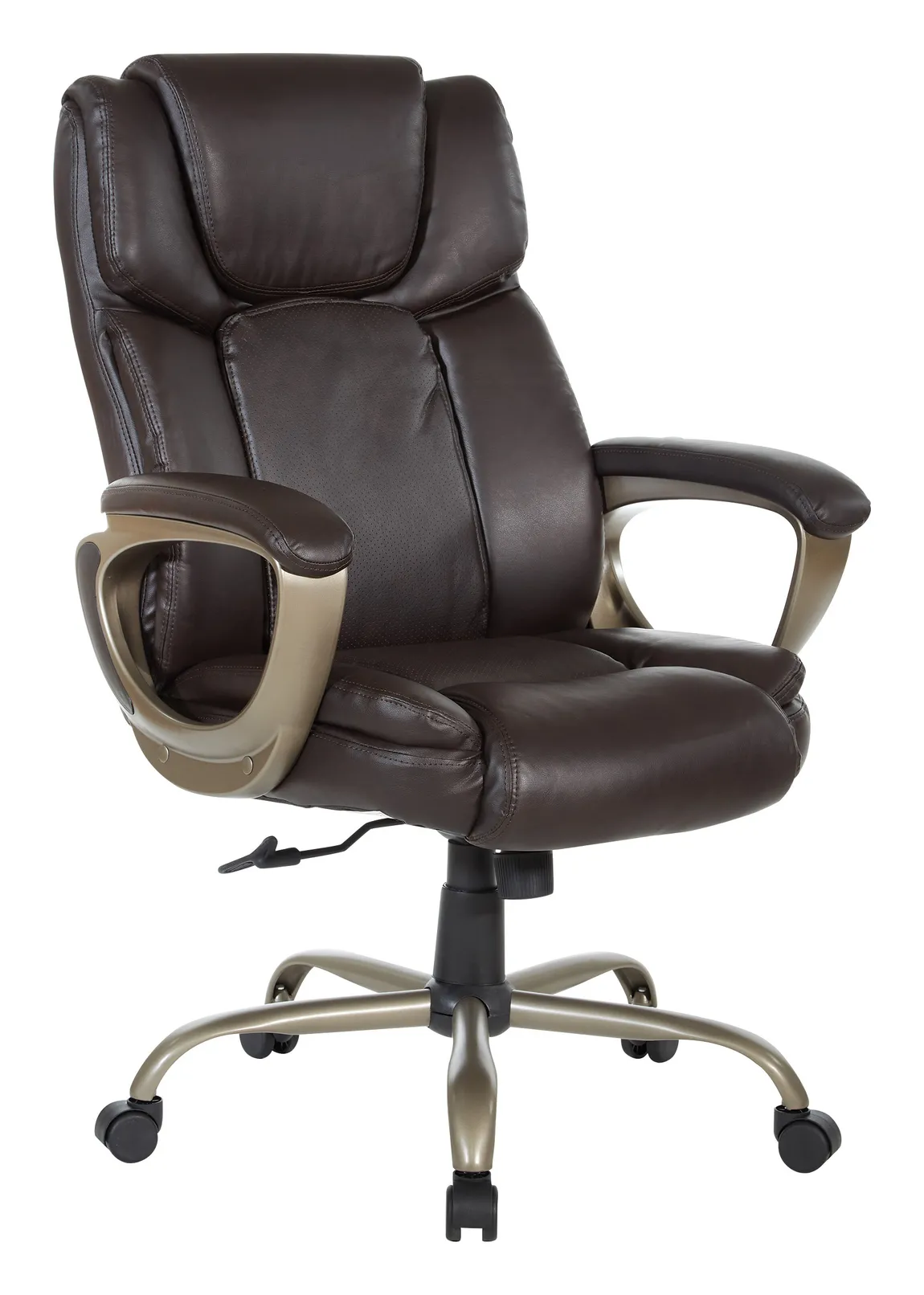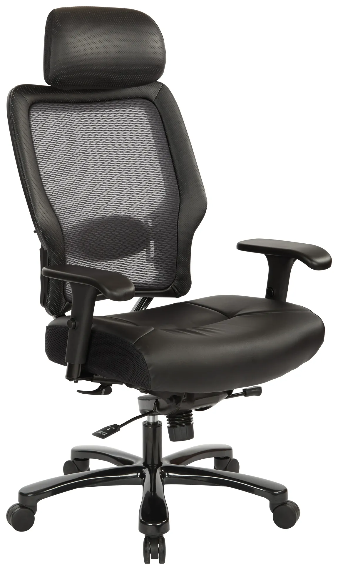 This heavy person office chair was designed with a high back and top-grain leather seat for an executive office. 2-to-1 tilt control, lock and anti-kickback allows for adjusting and relaxing. It comes standard in black with a lifetime manufacturers’ warranty on component parts.