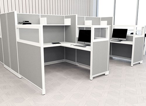 Echo series cubicle are of four different types, A, B, C and D. The type D is suitable for single person. L shaped desk to provide wide space for computer and other necessary things. Top shelves available for storage needs. Files or books can be organized neatly on separate shelf. Easy assembly and movable parts. All the features integrate perfectly and united efficiently to make it a best cubicle. All the components and materials used in them are highly durable with standard quality. Subtle colors suit any worksurfaces and other office furniture. The laminated surfaces are easy to clean and available in various color options. This cubicle is ideal as a private work area and yet easily accessible in the surrounding. Spacious desk can be utilised to keep more of personal things like utensils, stationary, plants, decorative items, clothes, or such daily required things. Fully extended bottom panel for privacy and also hides wiring to keep the space professional and clean. As the panel is open type, enough room is available for leg movement keeping employees active. Panel options vary from glass, fabric, transparent, hard surface and so on. We are expert in creating perfectdesigns as per your business needs. Have a word with our experts for more specific requirements and crack the greater deals. Key Components   – Type D is suitable for a single person. – L-shaped desk to provide wide space for computer and other necessary things. – Top shelves available for storage needs. – Files or books can be organized neatly on separate shelves. – Easy assembly and movable parts. – All the features integrate perfectly and united efficiently to make it the best cubicle.
