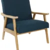 This exquisite Mid-Century modern armchair showcases a stunning brushed finish on its solid wood frame. It is characterized by a sleek cantilever design that effortlessly combines style and stability. The chair features generously thickly padded cushions for both the seat and back, ensuring unparalleled comfort. Available in four eye-catching fabric options, this versatile piece is perfect for enhancing the aesthetic of a living room, study, or guest room when paired as accent chairs.
