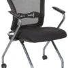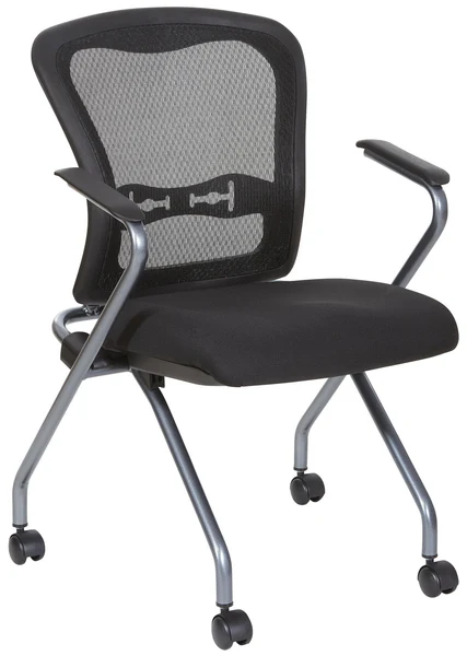 Hot Item! – Our Top Pick for Nesting Chairs with Arms! This mesh folding chair from Office Star features a “Pro-Grid” screen mesh backrest for maximum support and ventilation. We recommend this model as a low-cost alternative to the Mayline TSH1 chair. Key Features:  *Ergonomic Lumbar Support* Designed to cradle your lower back, providing unmatched comfort during long periods of sitting. The back also flexes for added comfort. *Comfortable Seat Cushioning* Generously thick and smooth, the seat cushion invites you to sink in and relax, making it perfect for extended use. *Wide Range of Fabric Options* Choose from an impressive selection of 80 seat fabrics, allowing you to customize your chair to match any décor or personal style. *Stylish Presentation* The chair is shown in Grade B Freeflex Spring Coal 30, showcasing modern sophistication. *Integrated Armrests* Featuring sleek armrests topped with durable urethane caps, this chair offers both comfort and a polished look. *Robust Steel Frame* Engineered for strength, the sturdy steel frame is enhanced with a sophisticated titanium finish that adds a touch of contemporary style. *Mobility Made Easy* Dual wheel hooded casters glide smoothly across various floor surfaces, enabling effortless movement and repositioning as needed. *Space-Saving Design* Designed for convenience, the chair easily folds for horizontal nesting, ensuring efficient storage when it’s not in use. *Quality You Can Trust* These mesh folding chairs not only offer remarkable comfort but also meet or exceed ANSI/BIFMA standards for durability and safety. Dimensions: Overall: 36.25″H x 24.25″W x 25″D Seat Size: 18.25″W x 19.25″D x 3.75″Thick Back Size: 19″W x 18.5″H Seat Height: 19.25″H 15 year limited warranty from Office Star Grade B Freeflex Spring Coal 30 normally ships within 2-3 business days from our CA or NJ warehouse. All other colors are custom made and ship within 7-8 business days. NOTE: This product is packaged two per carton