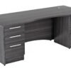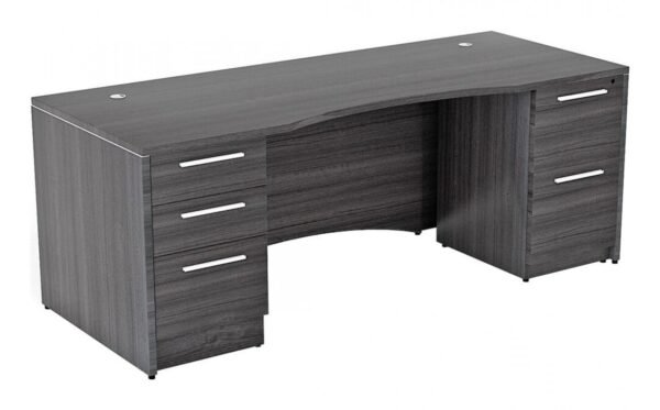 The double pedestal desk is made from a high quality laminate and it has built in grommets for easy cable management. It’s available in different sizes, finishes and you can choose from multiple sets of drawers for storage. As pictured, it’s shown in a Grigio finish with 2 sets of drawers and it’s guaranteed by a limited lifetime warranty.