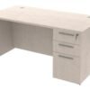 The pedestal desk is available in different sizes, finishes, and you can choose from multiple drawer configurations. It comes equipped with adjustable leveling glides for stability and built-in grommets for cable management. As pictured, it is shown in a Blanc De Gris finish and is backed by a limited lifetime warranty.