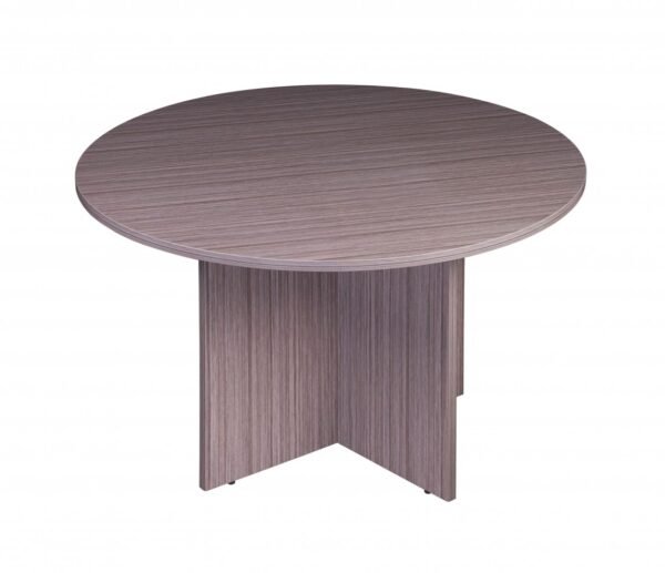 The large round conference table can be custom ordered in different sizes and you can choose from several vibrant finish options, Driftwood shown. It’s made from a commercial grade laminate and it has contemporary styling that would look perfect in any office environment.