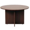 The round office conference table is available in different sizes and you can choose from several vibrant finish options, Mahogany shown. It’s made from a premium grade laminate and it has 2-3mm PVC edge banding on the round top and base panels.