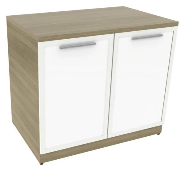 The storage cabinet can be ordered with your choice of white glass or matching laminate doors. It’s made from a high quality laminate and you can choose from different finish options, Noce shown. Quality guaranteed by a limited lifetime warranty.