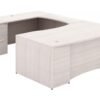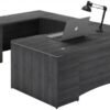This U shaped desk is part of the Potenza series by Corp Design. Available in several different sizes, finishes and your choice of storage and desk accessories. As pictured the desk is shown in an Miele finish with two full pedestal drawers. Manufactured with high-density laminate and quality backed by a limited lifetime warranty.