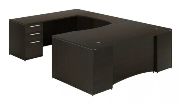 This U shaped office desk from Corp Design is a large format workstation designed with the subtle sophistication of their Potenza series. The size, finish, and in-desk storage configuration can be adjusted independently to your exact specifications. Quality guaranteed by a limited lifetime warranty.