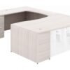 This U shaped desk with glass modesty panel is part of the Potenza series by Corp Design. Available in several different sizes, finishes and your choice of storage and desk accessories. As pictured the desk is shown in an Grigio finish with two full pedestal drawers. Manufactured with high-density laminate and quality backed by a limited lifetime warranty.