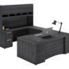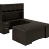 This U shaped office desk by Corp Design features the characteristic modern design of the Potenza series in a large form factor. Choose from several in-desk storage configurations to supplement the overhead pigeon hole compartments and door-covered compartments. Quality guaranteed by a limited lifetime warranty.