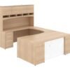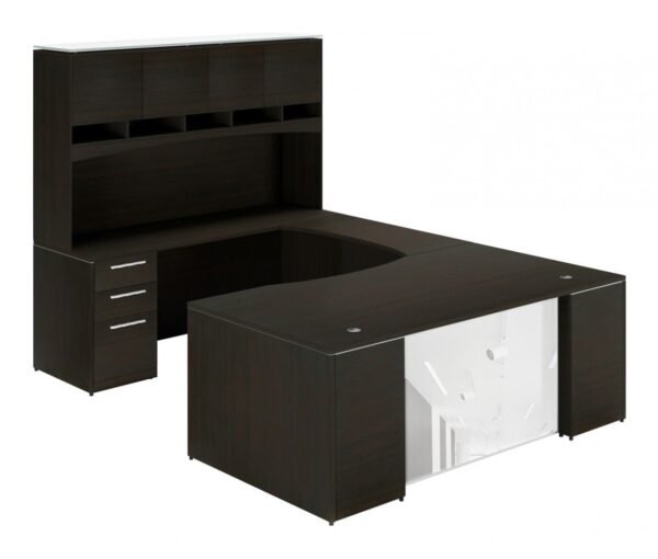This U shaped desk is designed with the aesthetics of Corp Design’s Potenza series, offering a two-drawer pedestal installed alongside an overhead storage hutch with closed and open storage. Size and finish options are also available to make this desk truly your own. Quality guaranteed by a limited lifetime warranty.