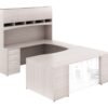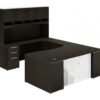 This U shaped computer desk from Corp Design’s Potenza series offers a large workspace and plentiful storage in a modern design. The hutch features closed and open storage while your choice of pedestal drawers offer lockable capacity for privacy. Quality guaranteed by a limited lifetime warranty.