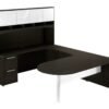 Corp Design offers this executive U shaped peninsula desk with hutch as a remarkable choice of office furniture for an executive office. It provides a centerpiece to the room that can be built around to complete a high end look. The Executive office is where top quality and stunning office furniture pieces are found, and this desk is no exception. The desk will fit well in an executive setting while providing the highest quality of functionality in office furniture. An executive desk is one that is built to higher standards than a regular office desk to provide a style of luxury. This could be patterns of the woodgrain, or glass modesty panels, or even storage hutches. The executive desk is intended to give the user a measure of clout. The desk looks high quality and important, therefore the person behind it must be as well. This line of thinking has prevailed for decades, while today Corp Design has made an executive desk affordable to all while still carrying the same level of clout as more expensive office furniture. A U shaped desk is all about multitasking. An unmatched level of desktop space provides three different work areas from the front traditional desk, to the back desk that often holds office equipment such as phones and printers, to the bridge that comes between them that can be multiuse. The U shaped desk provides every square inch of workspace to a user who can’t get enough. This U shaped executive desk is all the fantastic qualities of both combined into one mammoth piece of office furniture. A peninsula desk is a great option for anyone looking to hold small group meetings in their own office instead of tying down the main conference room. The peninsula acts as small greeting table when placing a couple chairs in front of it. This is a newer concept in offices today where a small meeting can be held to maintain the maximum efficiency of the office. The peninsula desk also has a more minimalist design than other desks, this may seem to go against the executive style, but Corp design has provided great options of the highest quality as an answer to this. The added hutch provides a great amount of storage for the office. Enclosed doors makes for a very effective out of sight storage option. The hutch also provides a place for book or binder storage on the desktop of the U shaped executive desk. The hutch should be positioned against a wall with the orientation of the rest of the desk facing the center of the room. This setup is how the U shaped executive desk with hutch was designed. The U shaped executive computer peninsula desk with hutch is made from commercial grade laminate that is backed by a ten year warranty. There is no need to wonder if the desk will stand up to the test of time because laminate is the strongest building material for office furniture. This U shaped executive peninsula desk with hutch is built to last! Not only that, but Corp Design has selected several attractive finishes to ensure that this desk will fit within any design aesthetic. The finishes are Blanc De Gris, Espresso, Grigio, Miele and Noce. Overall, this U shaped executive office peninsula desk with hutch is a great choice to make for new office furniture. From it’s luxurious appearance, to its extreme workspace, to its affordability this piece of office furniture has a lot of value. The U shaped executive peninsula desk with hutch is an amazing desk to have in an office, it will be the centerpiece of the room that will provide a great benchmark to layout the rest of the office from. This U shaped executive desk will provide sturdy and stylish service for years to come.