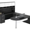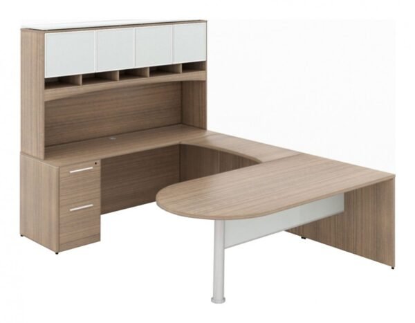 This U shaped peninsula desk is part of the Potenza series by Corp Design. Available in several different sizes, finishes and your choice of storage and desk accessories. As pictured the desk is shown in the Noce finish with hutch and full pedestal drawer. Manufactured with high-density laminate and quality backed by a limited lifetime warranty.