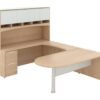 Corp Design offers this executive U shaped peninsula desk with hutch as a remarkable choice of office furniture for an executive office. It provides a centerpiece to the room that can be built around to complete a high end look. The Executive office is where top quality and stunning office furniture pieces are found, and this desk is no exception. The desk will fit well in an executive setting while providing the highest quality of functionality in office furniture. An executive desk is one that is built to higher standards than a regular office desk to provide a style of luxury. This could be patterns of the woodgrain, or glass modesty panels, or even storage hutches. The executive desk is intended to give the user a measure of clout. The desk looks high quality and important, therefore the person behind it must be as well. This line of thinking has prevailed for decades, while today Corp Design has made an executive desk affordable to all while still carrying the same level of clout as more expensive office furniture. A U shaped desk is all about multitasking. An unmatched level of desktop space provides three different work areas from the front traditional desk, to the back desk that often holds office equipment such as phones and printers, to the bridge that comes between them that can be multiuse. The U shaped desk provides every square inch of workspace to a user who can’t get enough. This U shaped executive desk is all the fantastic qualities of both combined into one mammoth piece of office furniture. A peninsula desk is a great option for anyone looking to hold small group meetings in their own office instead of tying down the main conference room. The peninsula acts as small greeting table when placing a couple chairs in front of it. This is a newer concept in offices today where a small meeting can be held to maintain the maximum efficiency of the office. The peninsula desk also has a more minimalist design than other desks, this may seem to go against the executive style, but Corp design has provided great options of the highest quality as an answer to this. The added hutch provides a great amount of storage for the office. Enclosed doors makes for a very effective out of sight storage option. The hutch also provides a place for book or binder storage on the desktop of the U shaped executive desk. The hutch should be positioned against a wall with the orientation of the rest of the desk facing the center of the room. This setup is how the U shaped executive desk with hutch was designed. The U shaped executive computer peninsula desk with hutch is made from commercial grade laminate that is backed by a ten year warranty. There is no need to wonder if the desk will stand up to the test of time because laminate is the strongest building material for office furniture. This U shaped executive peninsula desk with hutch is built to last! Not only that, but Corp Design has selected several attractive finishes to ensure that this desk will fit within any design aesthetic. The finishes are Blanc De Gris, Espresso, Grigio, Miele and Noce. Overall, this U shaped executive office peninsula desk with hutch is a great choice to make for new office furniture. From it’s luxurious appearance, to its extreme workspace, to its affordability this piece of office furniture has a lot of value. The U shaped executive peninsula desk with hutch is an amazing desk to have in an office, it will be the centerpiece of the room that will provide a great benchmark to layout the rest of the office from. This U shaped executive desk will provide sturdy and stylish service for years to come.