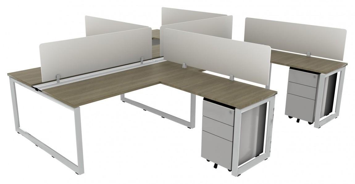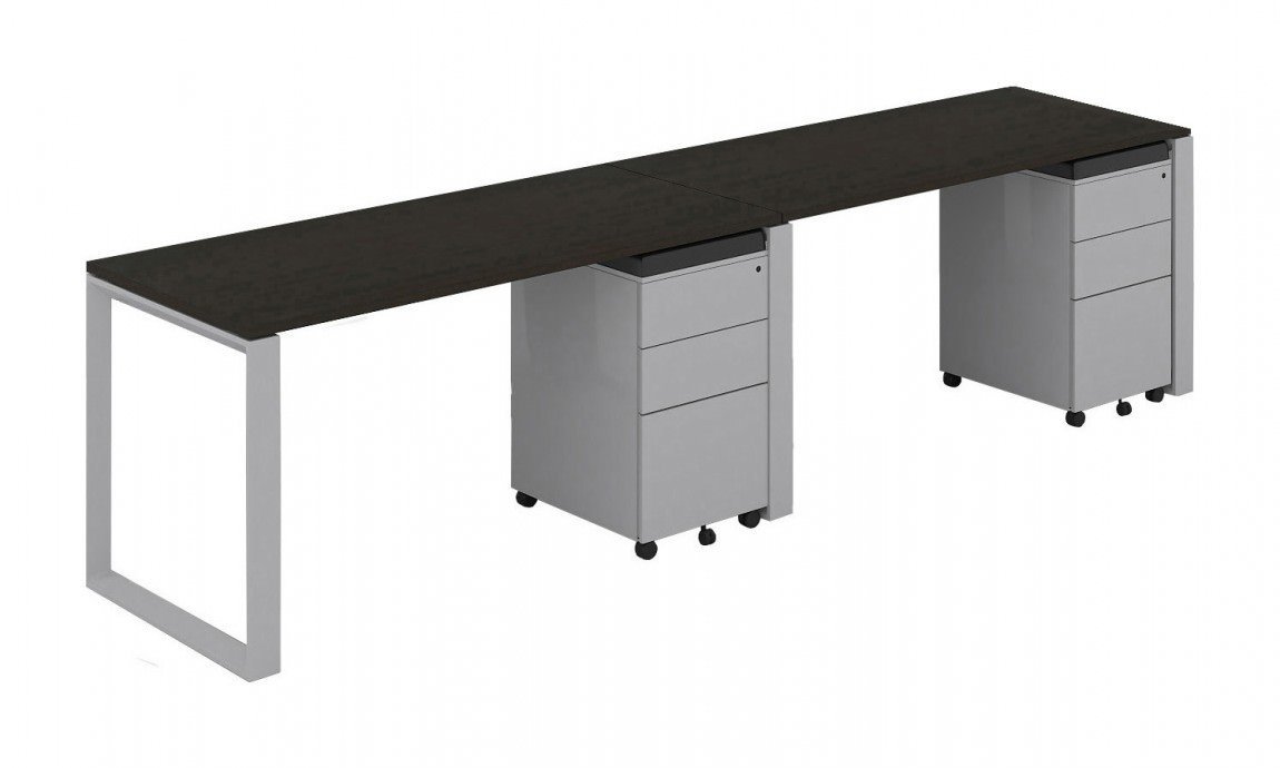 The multiple person desk can be custom ordered in different sizes, and you can choose from several vibrant finish options, Espresso shown. Crafted from thermally fused laminate, it features durable PVC edge banding for added protection and integrated grommets for seamless cable management. You have your choice of drawers for storage, and it is guaranteed by a limited lifetime warranty.